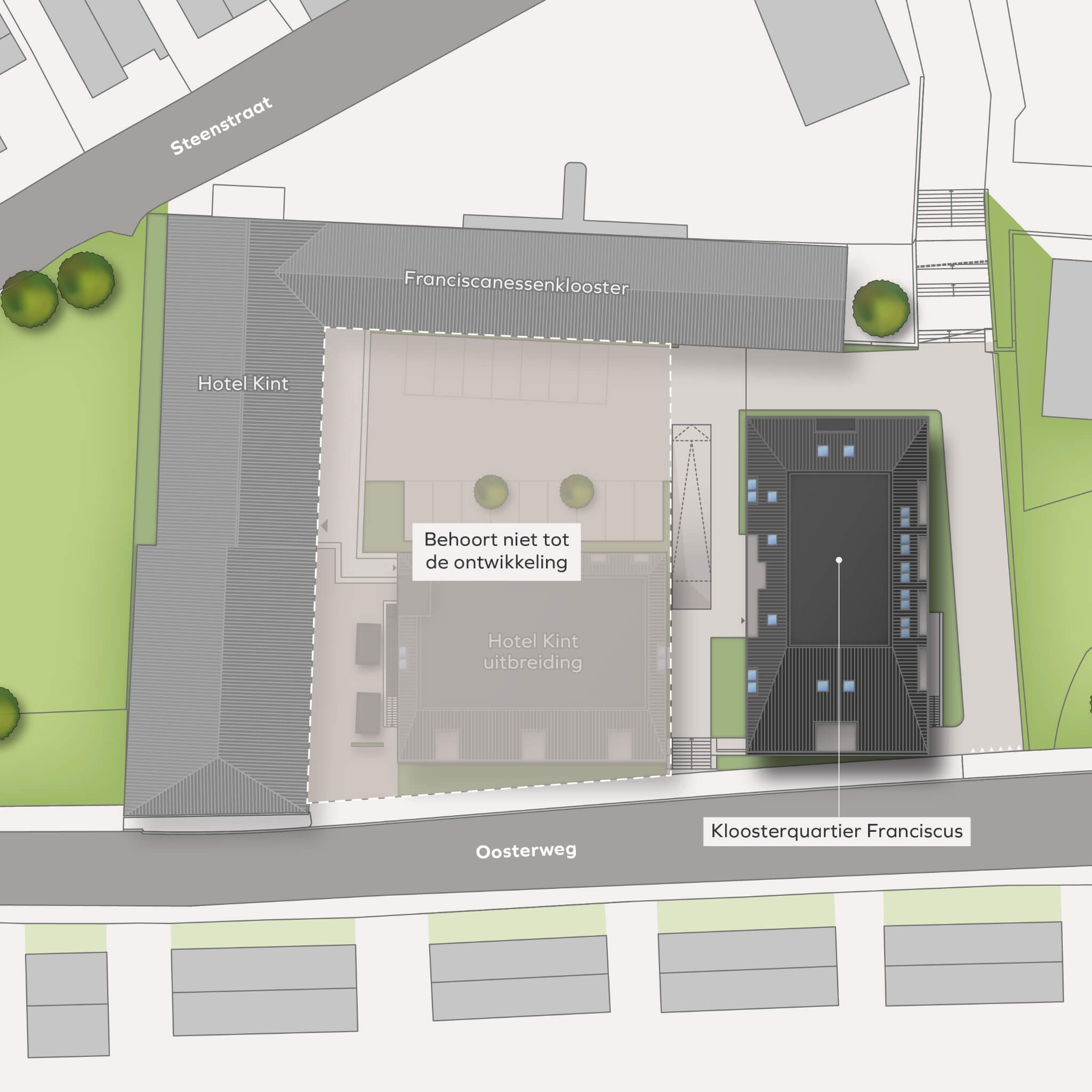 Het voormalige bowlingcentrum aan de Oosterweg maakt plaats voor een nieuw kleinschalig appartementencomplex. Het nieuwe gebouw krijgt een uitstraling dat recht doet aan het prachtige, aangrenzende Franciscanessenklooster. Net zoals de gekozen naam voor het project: Kloosterquartier Franciscus.