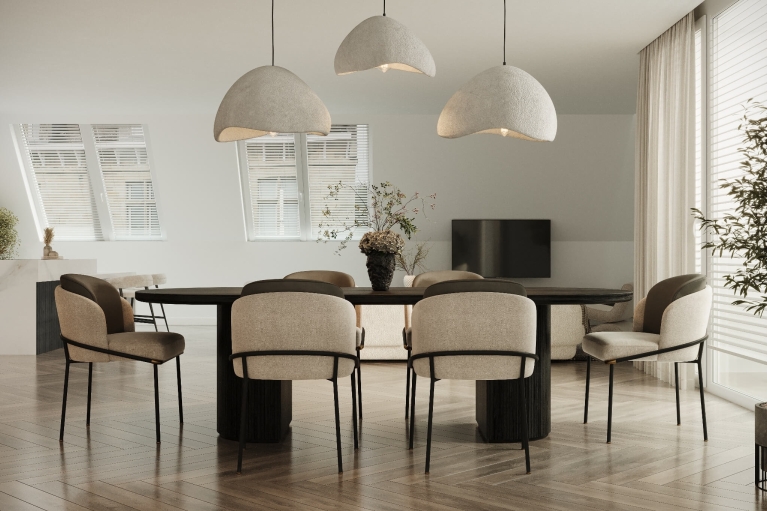 Type E is een royaal tweelaags appartement van circa 185 m² met veel ruimte voor wonen, werken en gezinsleven. De indeling biedt een heldere scheiding tussen de leefverdieping en de slaapverdieping, met daarnaast een extra kamer voor werk of hobby. Dankzij de hoekligging voelt de woning bijzonder vrij en ruimtelijk aan.